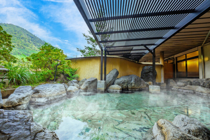 標高1,000mから眺める天空露天プールは水着着用、もしくは湯浴み着でお楽しみいただけます
